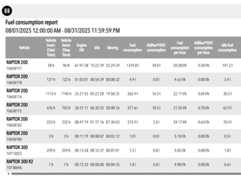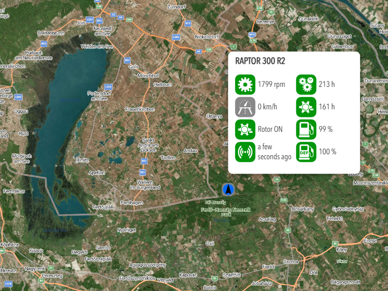 Status of the machine, location, performance data and activities.
